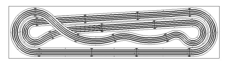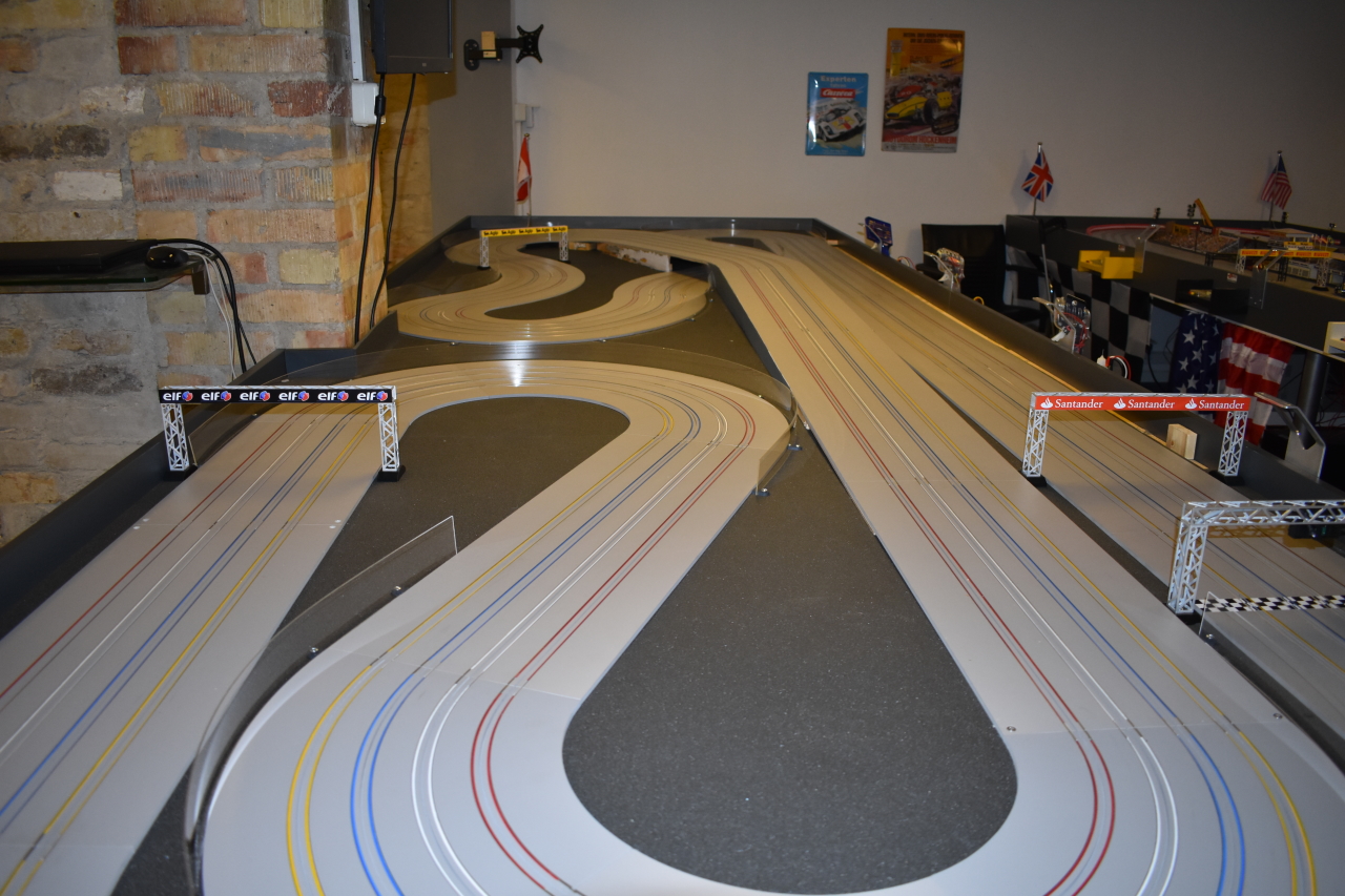 Bei uns lagert die Viperscaleracing "Dennys Layout" - eine 4-Spur-Bahn mit 4" x 16" [Plattenabmessungen]